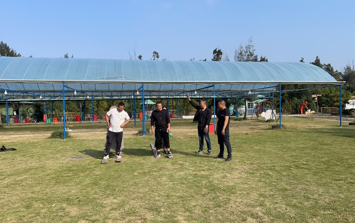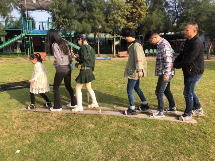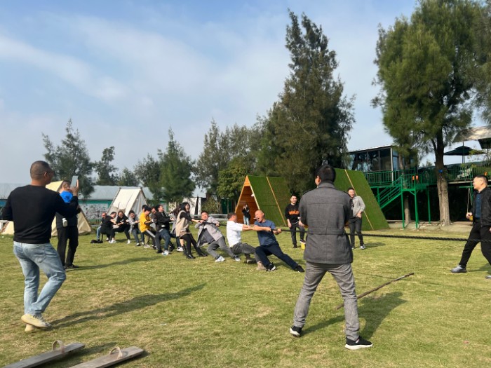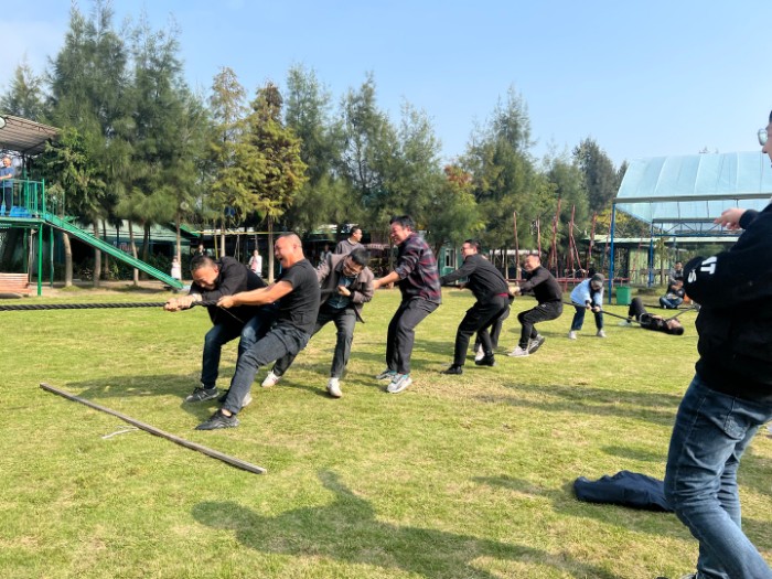 天翁作美,一大早陽光滿溢,在一聲聲加油吶喊中我們開始了本次團(tuán)建活動的第一個項(xiàng)目,選手們緊緊地抓住繩子,個個弓著腿,身子向后倒,有節(jié)奏地喊著:拉!拉!拉!